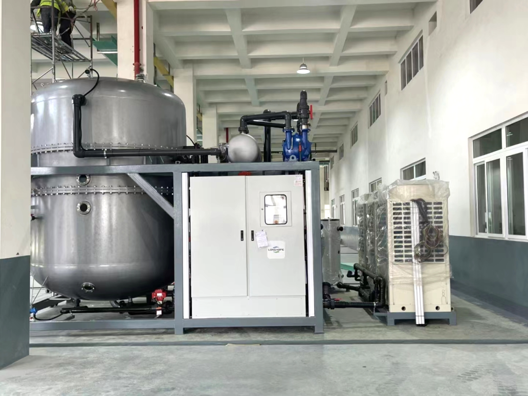 朗盼自主研發(fā)的V-HP-SF系列蒸發(fā)器,以高效節(jié)能的特性,在工業(yè)廢水處理領(lǐng)域脫穎而出。其采用壓縮機作用于冷媒,冷媒通過換熱器與物料發(fā)生熱交換,最終將物料進(jìn)行濃縮后以濃縮液形式排出。這一方式不僅降低了運行成本,還提高了處理效率,非常符合當(dāng)前環(huán)保中可持續(xù)發(fā)展的要求。所以選擇低溫蒸發(fā)器,意味著選擇了一種經(jīng)濟、環(huán)保、高效的廢水處理方式。